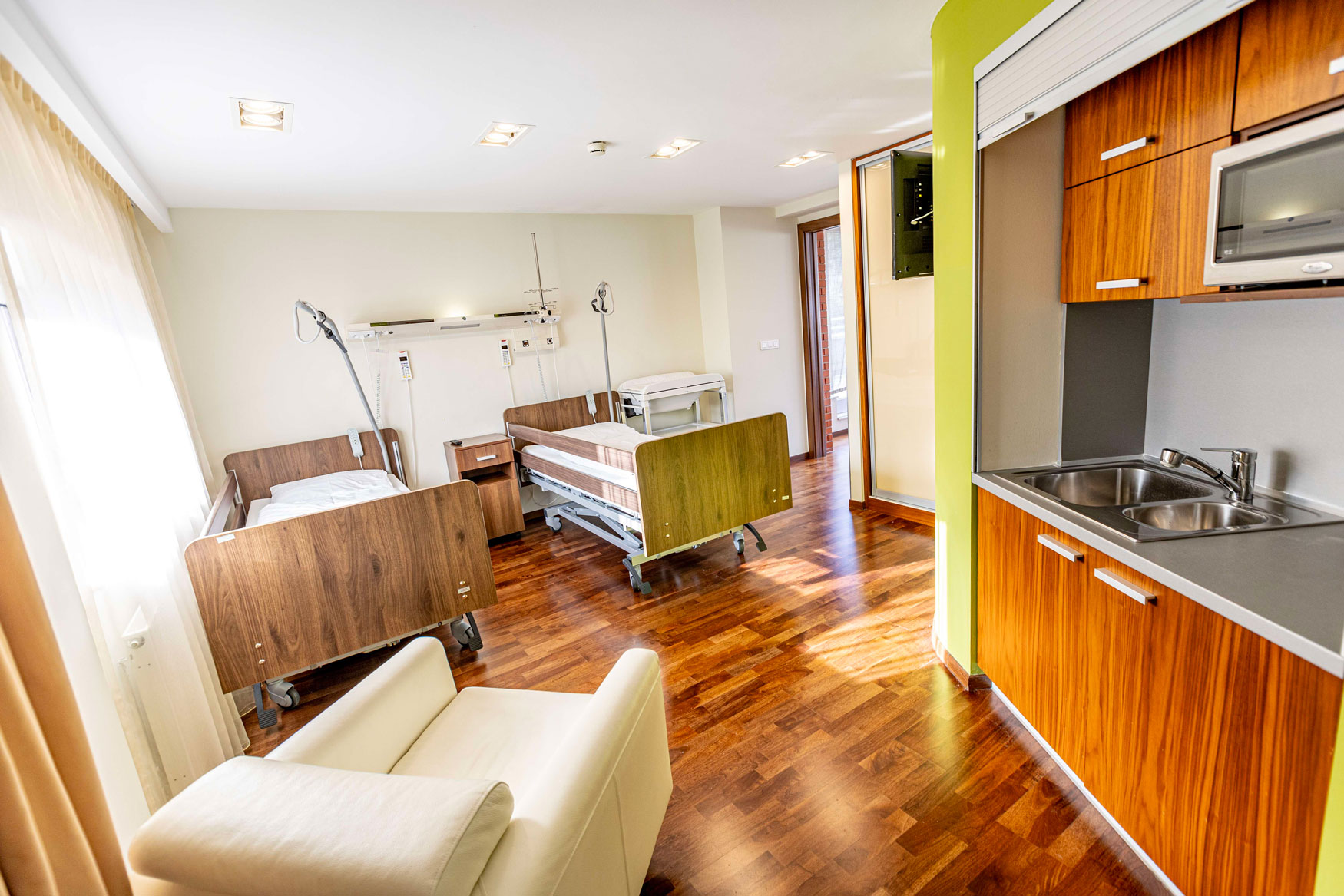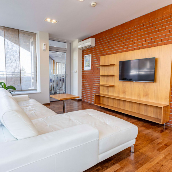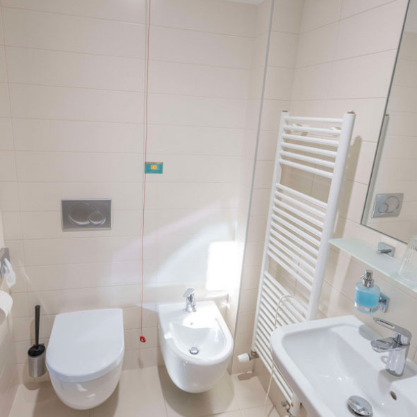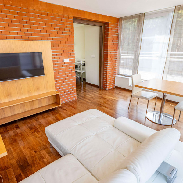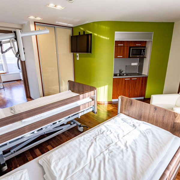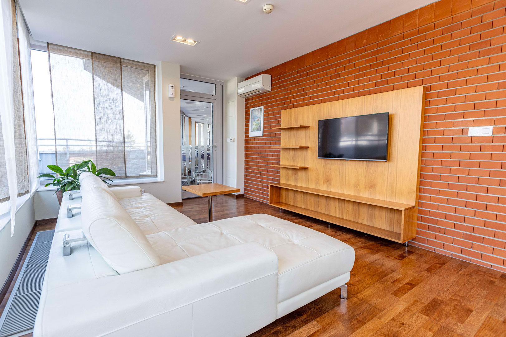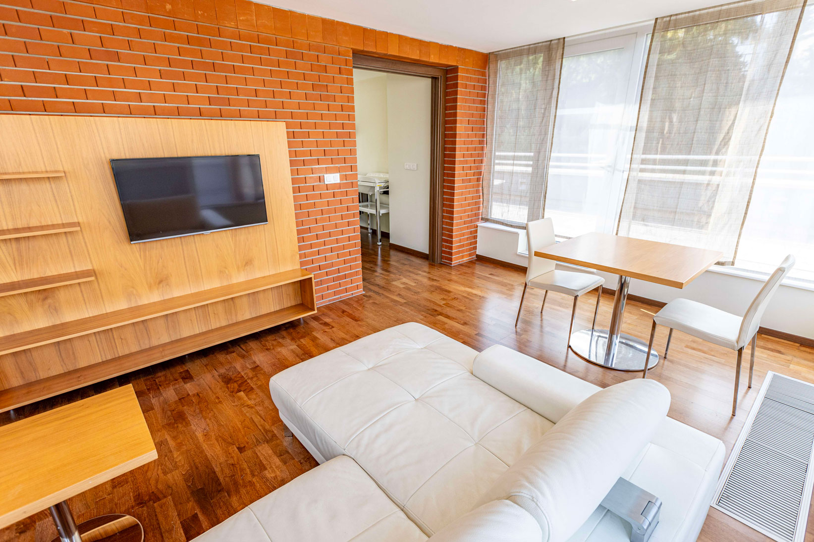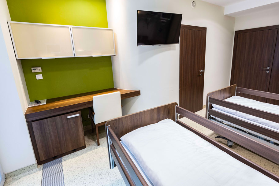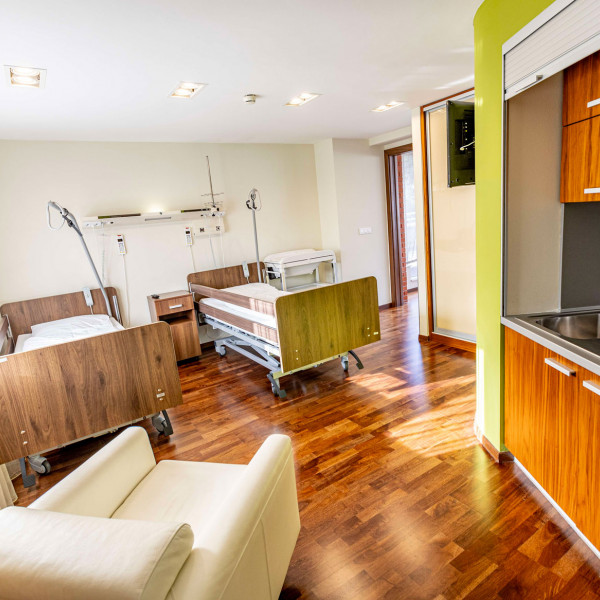 Nadštandartné ubytovanie k dispozícii v pôrodnom balíčku KOCH Premium. Priestranný apartmán s úžasným výhľadom do Kochovej záhrady i na panorámu Bratislavy.